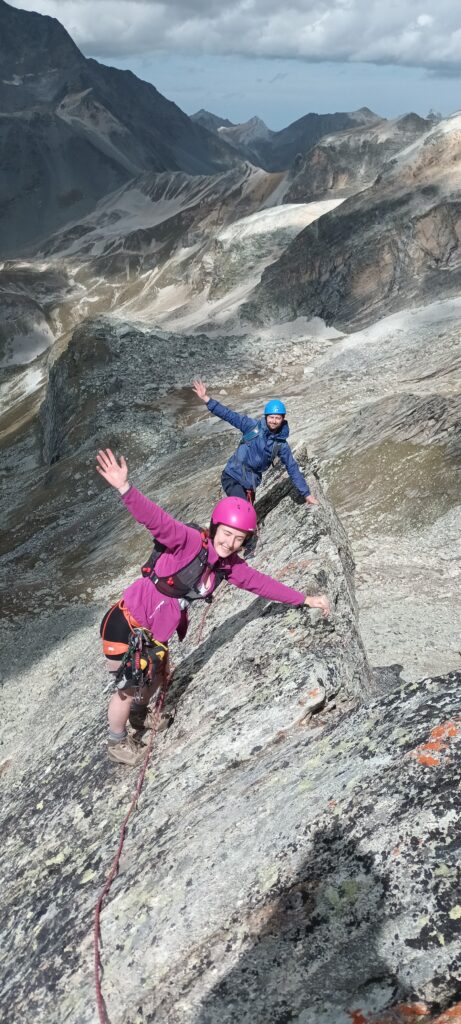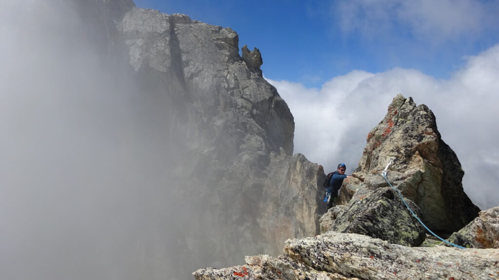 Nous conseillons de faire la traversée Sud/Nord de l’aiguille. Il faut compter 1h30 de marche pour atteindre le début de l’arête. Ensuite c’est une magnifique escalade jamais difficile (passages de 3) pour atteindre le sommet. La journée n’est pas finie ! Car il faudra faire un rappel, escalader et désescalader des passages très aériens pour rejoindre le Col du Ravin Noir. En bref, une des plus belles arêtes de rocher de Vanoise.